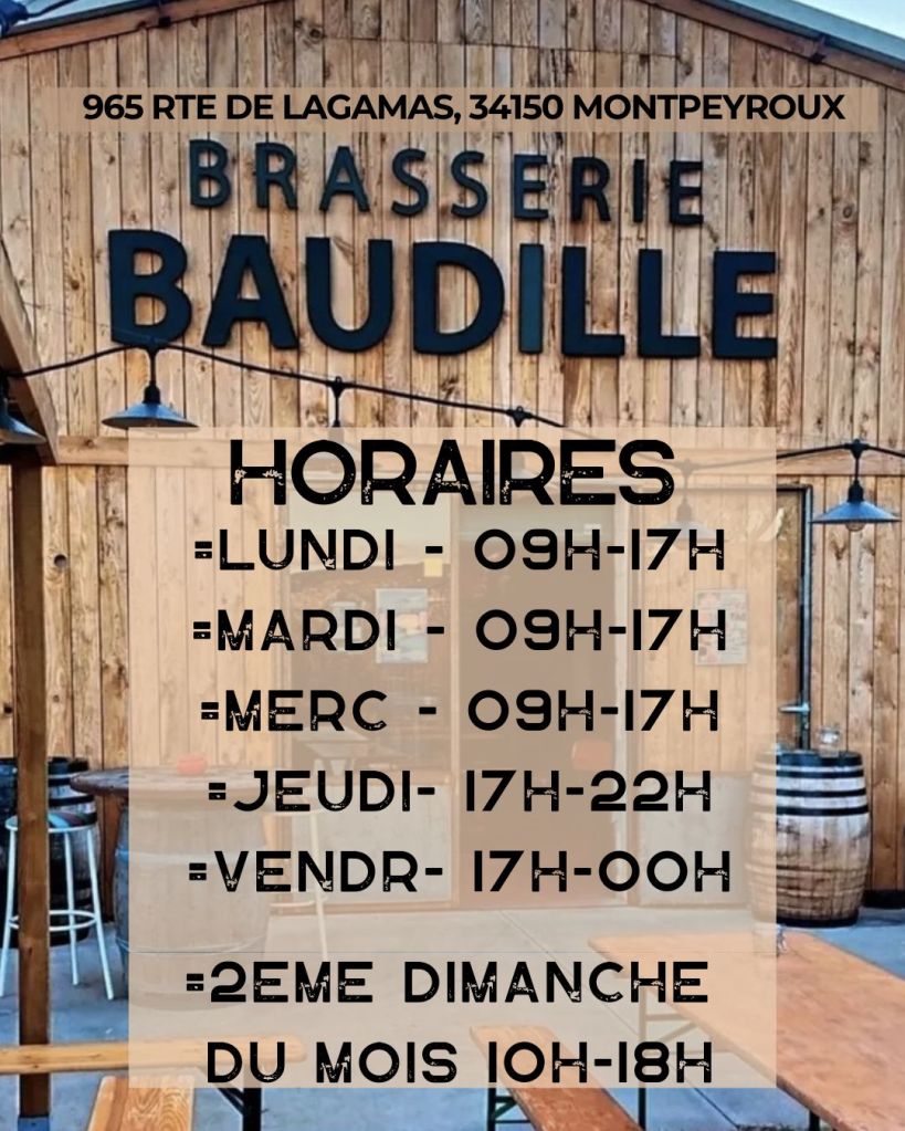 📍 Lieu : Brasserie Baudille, Hangar 7, 965 route de Lagamas, 34150, Montpeyroux